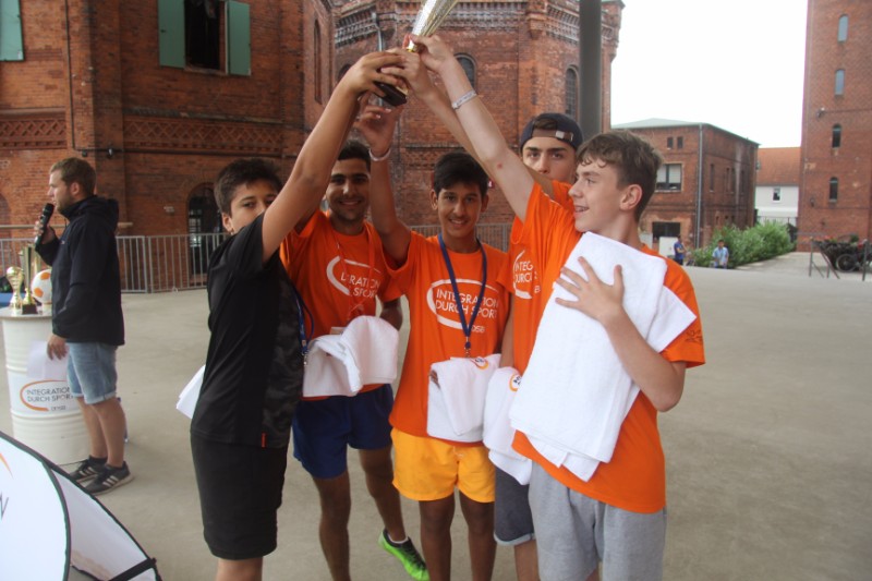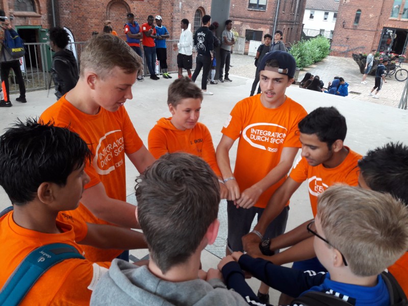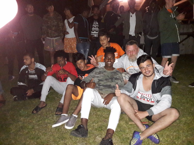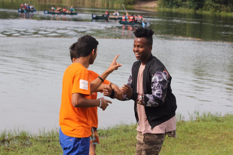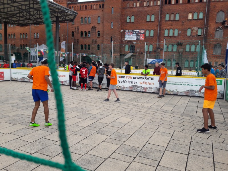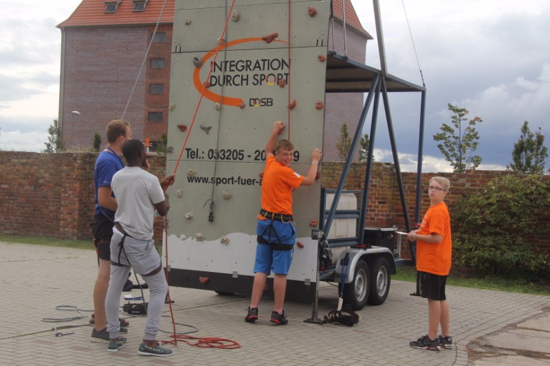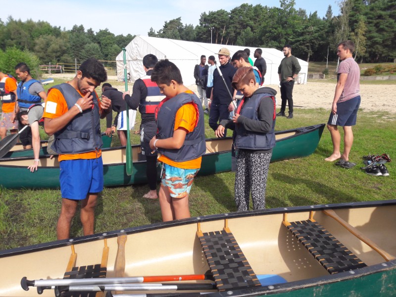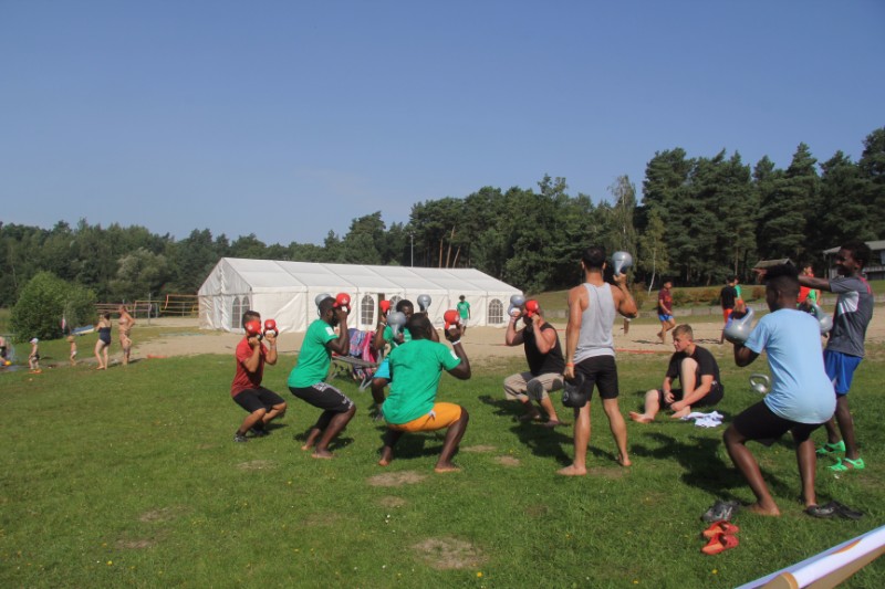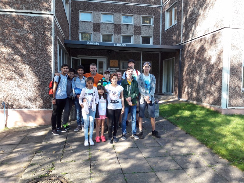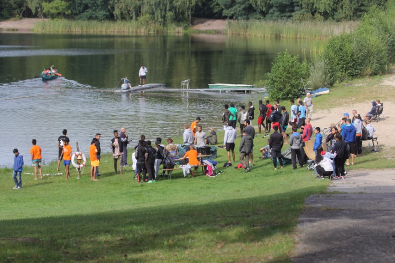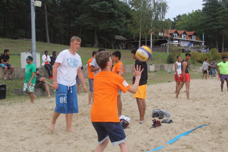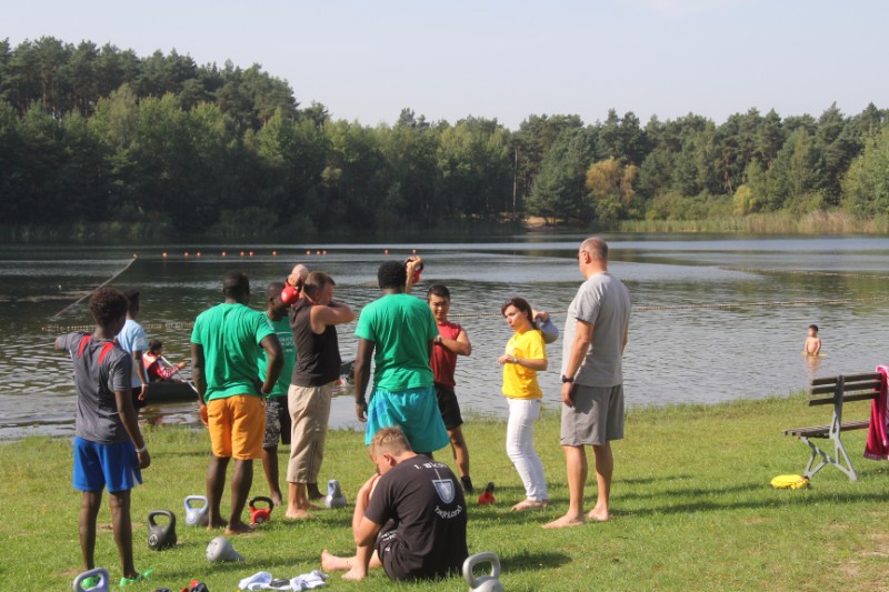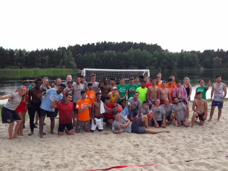Es trafen sich junge Leute unter anderem aus Somalia, Eritrea, Nigeria, Syrien, Tschetschenien und Afghanistan, um nur einige zu nennen. In den vier Tagen lernten sie sich in sportlichen Aktivitäten und gemütlichem Beisammensein kennen. Aus unserem Verein reisten Sportler aus Deutschland, Syrien und Afghanistan an. Alle Jugendlichen und ihre Betreuer übernachteten in Holz-Blockhütten direkt am See. Das internationale Jugendlager bot neben Disco-, Grillabend und Lagerfeuer, verschiedene Workshops rund um den Sport an. Aus unserem Verein wurde Karate, sowie Kettlebell-Training durchgeführt. Dazu kamen diverse Turniere wie im Beach-Handball, Beach-Volleyball und Straßenfußball. Hier schafften unsere Jungs als Team den zweiten Platz. Am letzten Tag fand das Kanu-Staffel-Rennen statt und der Abend, und damit auch das Camp, klangen mit einem Feuerwerk am Friedensteich aus. Als Fazit sei gesagt, dass das Camp sein Ziel und Zweck erfüllte und die Jugendlichen aller Nationen ohne jeglichen Stress miteinander die Zeit verbrachten. Ein ganz großes Lob an das Organisations-Team der Brandenburger Sportjugend.