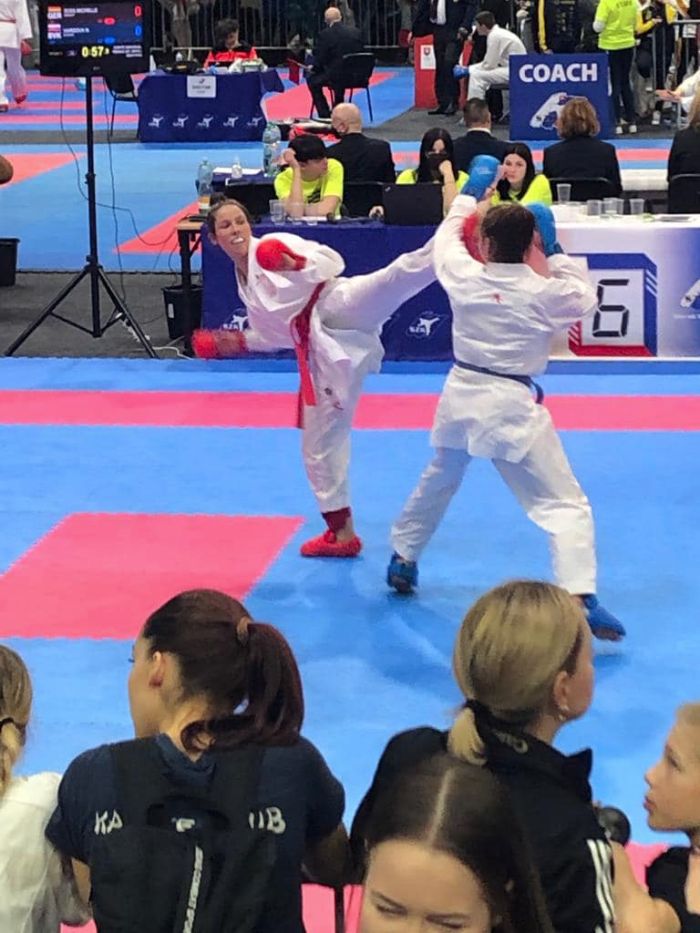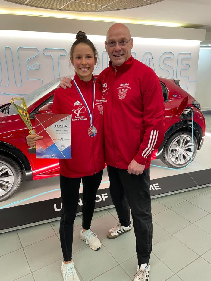 Michelle hat erst kurz zuvor Covid überstanden und hatte damit auch noch nicht ihre volle Leistungsfähigkeit erreicht. Dennoch schaffte Sie es in der Klasse U21 -55kg bis ins Finale. Dort führte sie bis kurz vor Schluß mit 5:3 gegen die Slowenin. Durch eine klare Fehlentscheidung der etwas subjektiv eingestellten Kampfrichter verlor sie jedoch am Ende mit 5:6. So blieb es dennoch bei einem ausgezeichneten 2.Platz.