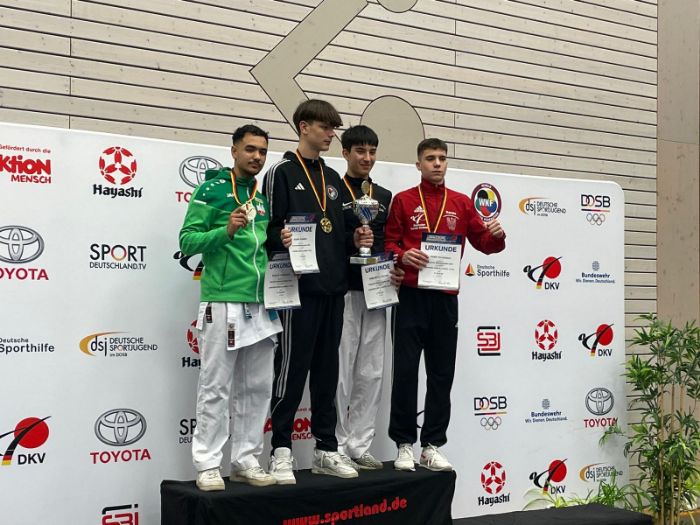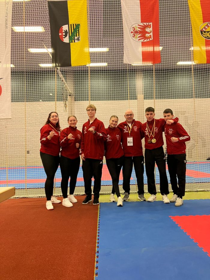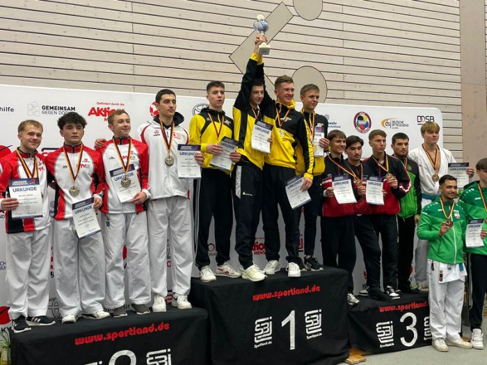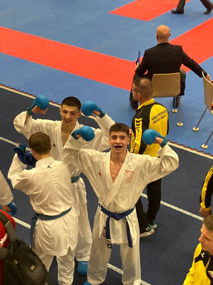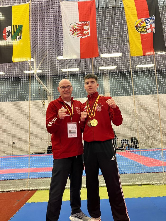Mit dabei waren die Sportler Thore Tschenisch, Louis Dommsch und Aleksej Valt vom 1. Brandenburger Kampfsportverein. Alle Wettkämpfer starteten im Bereich Kumite. Der Brandenburger Thore Tschenisch holte sich im Einzel in der Kategorie U18 -76 Kg den dritten Platz und damit die Bronze- Medaille. Im Bereich Team startete er gemeinsam mit zwei Wettkämpfern aus Sachsen- Anhalt. Hier gelang es ihm und seinen Partnern Deutscher Mannschaftsmeister zu werden und die Goldmedaille mit nach Hause zu nehmen.