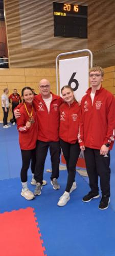 Am vergangenen Wochenende fanden im bayrischen Aschaffenburg die Deutschen Meisterschaften der Leistungsklasse im Karate statt. Für den Landesverband Brandenburg starteten Michelle Süß, Vanessa Lorenz und Louis Dommsch vom 1. BKSV mit ihrem Heim- und Landestrainer Bodo Pippel.