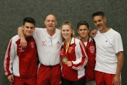 Zwischen den Trainingseinheiten wurden dann am Samstag die Wettkämpfe durchgeführt. Wobei in der jeweiligen Kategorie (Alters- und Gewichtsklasse) jeder gegen jeden kämpfen musste. Dieser Wettkampf hat das Niveau einer Deutschen Meisterschaft mit internationaler Beteiligung. Gina-Marie und Georgio Schmidt überzeugten mit ihrer Leistung und sicherten sich jeweils die Bronzemedaille in einem hochklassigen Starterfeld.