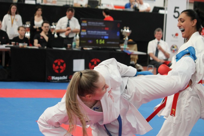 Gina Marie Mauer setzte alles im Training geübte perfekt um und stand mit einer überzeugenden Leistung im Finale der Klasse -61 Kg. Dort kam erstmalig der Videobeweis zum Einsatz. Bei einem gleichzeitigem Angriff beider Kämpferinnen, wurde ihrer Gegnerin aus Berlin der Treffer zuerkannt.