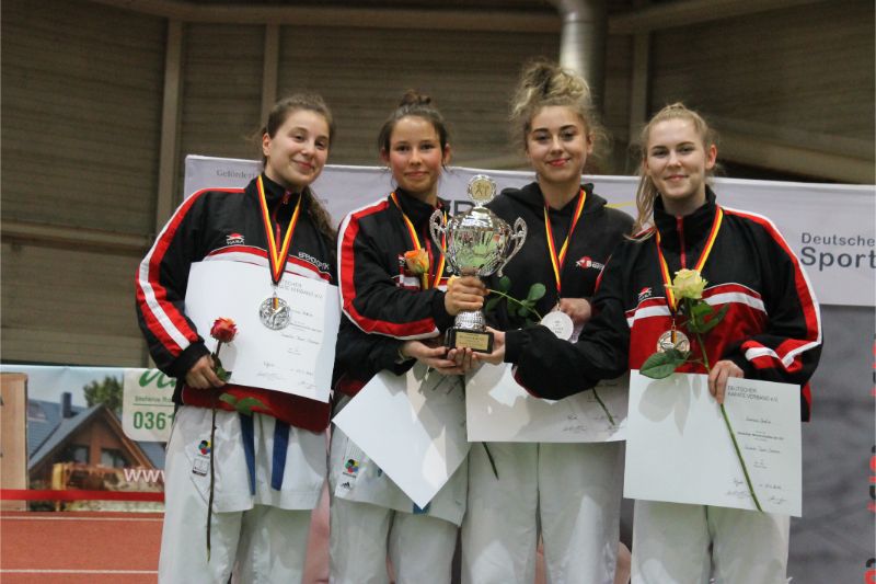 Für beide ging es am späten Nachmittag noch in die Mannschaftskämpfe! Gina und Michelle kämpften in den Mannschaften für Banzai Berlin! Dieser Start läuft über die guten Beziehungen der beiden Trainer Veysel Bugur und Bodo Pippel welche sich seit vielen Jahren unterstützen. Michelle konnte sogar auf Grund ihres Alters in den Mannschaften U18 und U21 Jahre starten. Beide Mannschaften kämpften sich bis in die Final,s ! So gewann sie mit der U18 die Deutsche Mannschaftsmeisterschaft und mit Gina Marie und der U21 Mannschaft wurde sie Deutscher Vizemeister. Beide Mädchen konnten so mit drei bzw. zwei Medaillen nach Hause fahren.