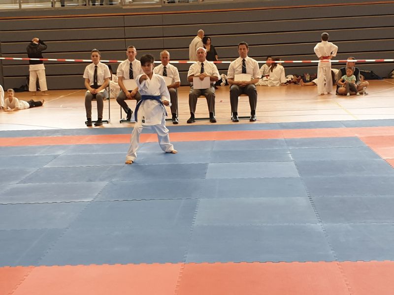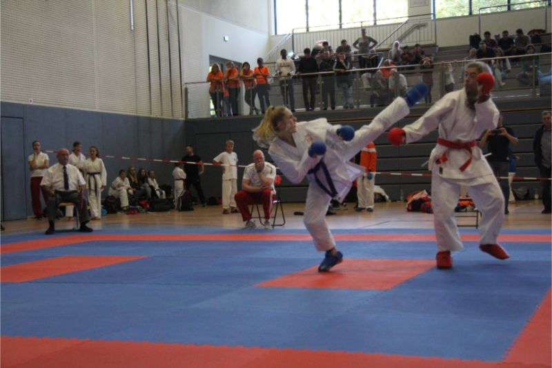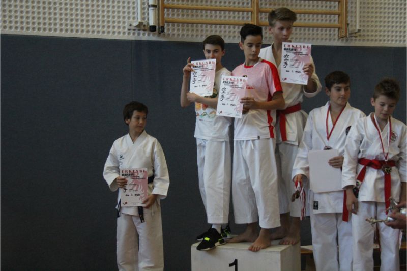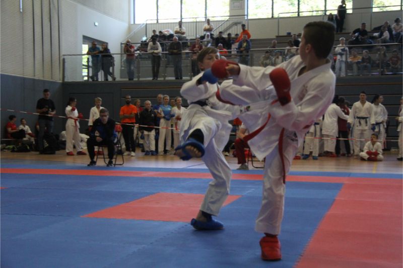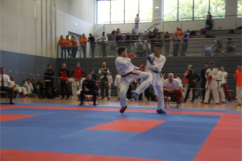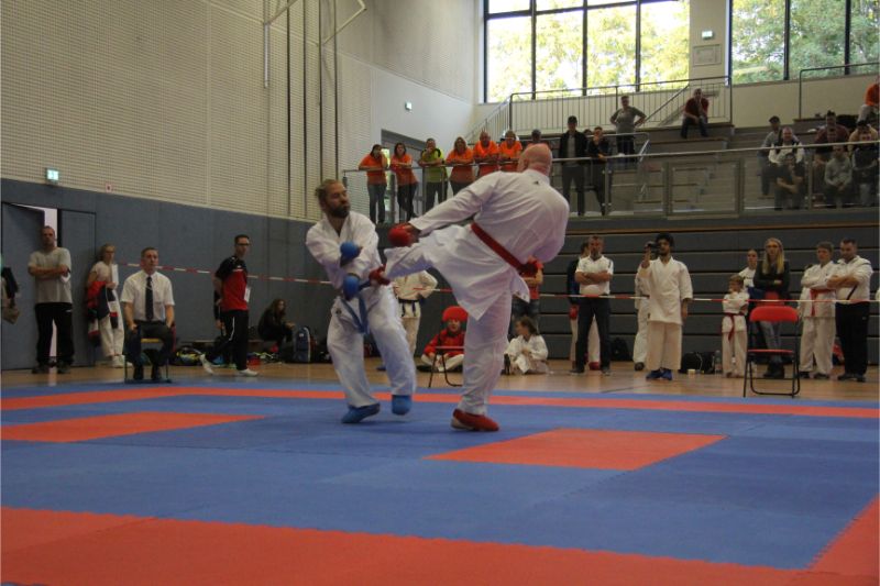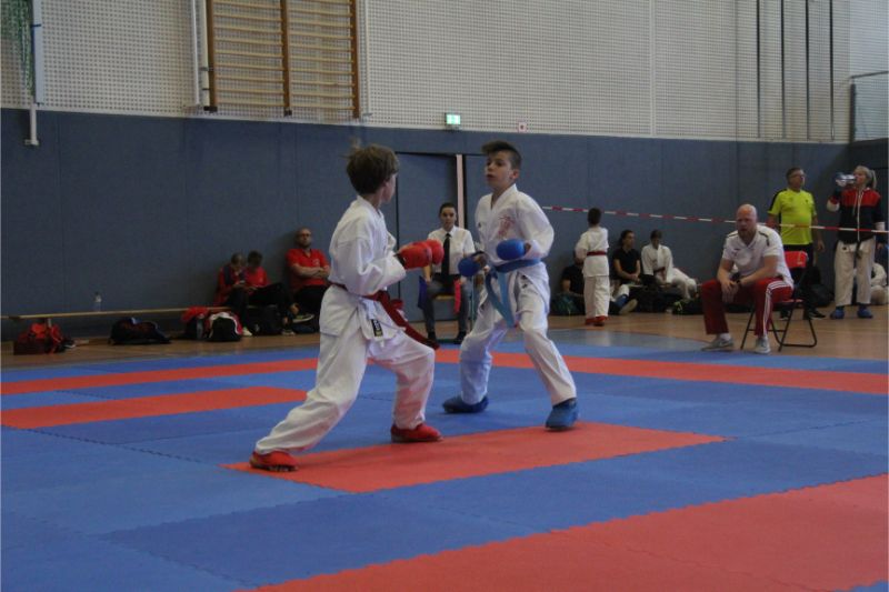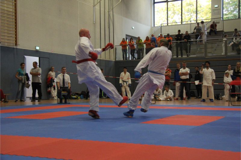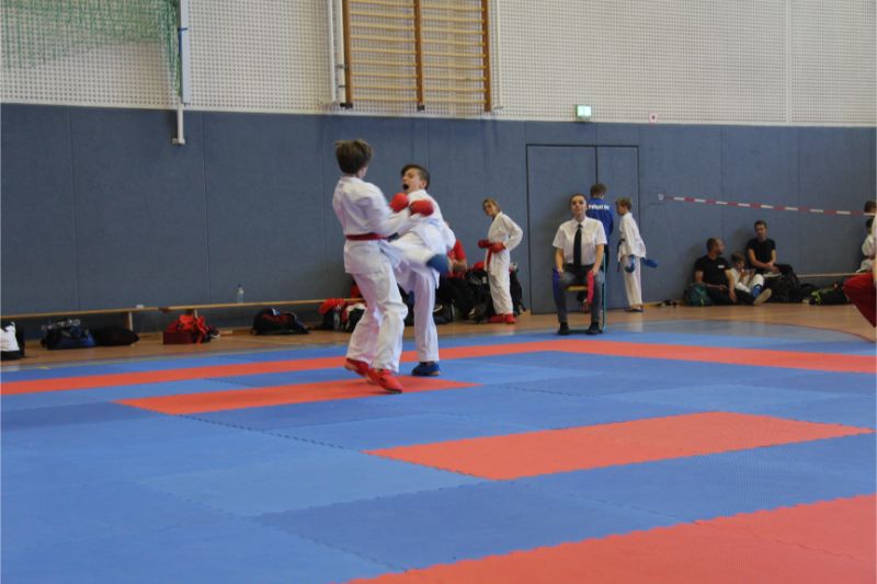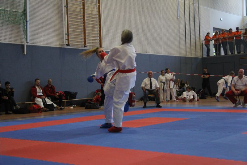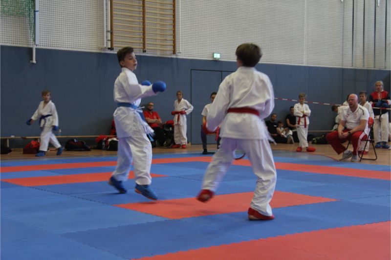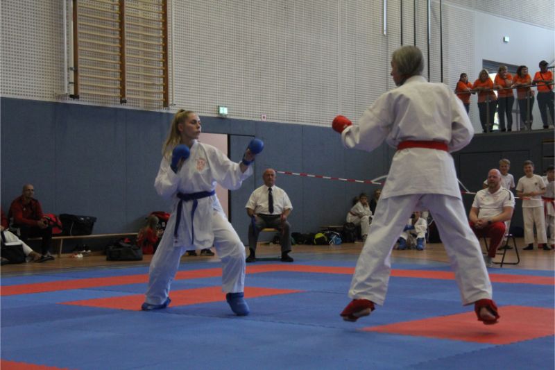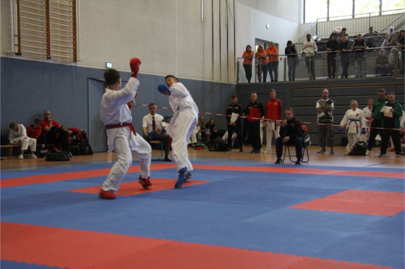 Im Kumite räumte unser Verein kräftig ab. Allen voran die Geschwister Gina-Marie und Marvin Mauer. Gina schickte ihre Gegnerin mit einem 8 : 0 vorzeitig von der Matte. Das gleiche bei Marvin. Hier wurde der Kampf abgebrochen, da ein Zuki von Marvin den Gegner ausknockte. Beide holten somit den Landesmeister. Im Bereich Herren – 60/ - 67 Kg trafen die Vereinskameraden Amr Hawout und Nick Novik aufeinander. Der Kampf war ausgeglichen und endete unentschieden. Amr bekam per Kampfrichterentscheid den Sieg zugesprochen. Beide starteten noch in einer weiteren Kategorie und holten sich hier die Bronzemedaille. Florian Misrea startete ebenfalls in zwei Kategorien und holte sich jeweils den Landesmeister. Freuen konnte sich Louis Dommsch. Er ging bei der Jugend – 63 Kg an den Start und gewann die silberne Medaille. Vanessa Lorenz holte bei der Jugend - -47/ - 54 Kg die Goldmedaille genauso wie Emely Beinhoff bei + 49 Kg. Thore Tschenisch gewann den Titel in der Kategorie Schüler – 38/ - 44 Kg. Hamza Hasan erkämpfte sich Gold in der Kategorie Schüler - 49 Kg. Ebenfalls Gold ging an Jan Oswald bei Schüler – 38 Kg. Bei unseren jüngsten Wettkämpfern erlitt Steven Goldmann in der Vorrunde durch einen Fußtritt eine Verletzung. Dennoch ging er wieder auf die Matte und wurde mit einer Bronzemedaille belohnt. Enttäuscht hatte Kempes Poenaru. Er blieb weiter unter seinem Leistungsvermögen und musste sich mit Platz 5 zufriedengeben. Eine Silbermedaille holte sich Aleksej Valt.