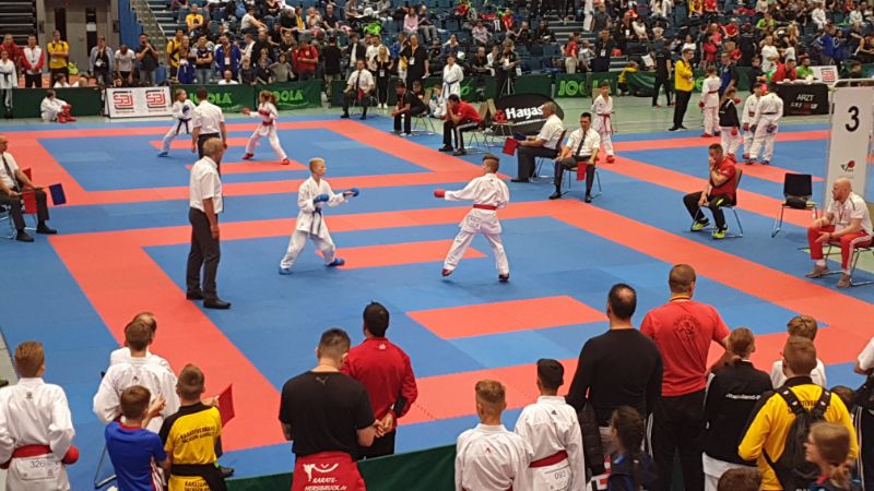 Für alle ging es am späten Sonnabendnachmittag im Bereich Kumite zur Sache. Thore startete als Erster. Seinen ersten Kampf gewann er 3:0. Den zweiten verlor er beim Unentschieden durch Senshu. Da sein Gegner in der nächsten Runde ebenfalls verlor, war für ihn auch keine Trostrunde möglich. Ähnliches ereilte Kempes. Erste Runde 3:0 dann mit Senshu ausgeschieden.