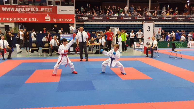 Am Wochenende reisten etliche Nachwuchs-Karatekas nach Bielefeld zu den Deutschen Meisterschaften der Schüler. Vom 1. BKSV waren es im Kumite-Bereich Thore Tschenisch, Aleksej Valt, Kempes Poenaru, Emeli Beinhoff und Jan Oswald. Mitgereist waren auch die Trainer Bodo Pippel, Gina-Marie und Marvin Mauer.