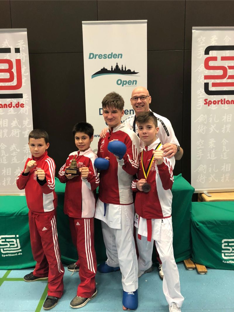 Aleksej Valt, Kempes Poenaru, Thore Tschenisch, Tom Esslinger und Etien Siegel vertraten hier den Karatedachverband Land Brandenburg im Bereich Kumite. An den stattgefundenen Dresden Open nahmen etwa 650 Wettkämpfer aus Deutschland, Russland, Weißrussland, Polen und Tschechien teil.