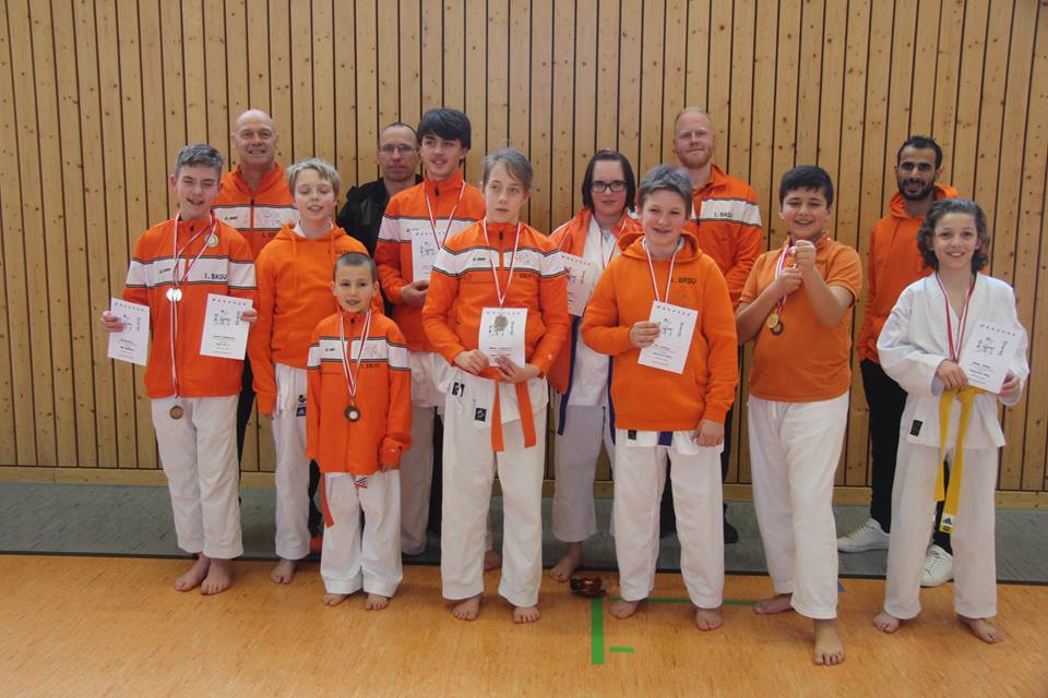 Der 1.BKSV stellte den gesamten Teil der Landesauswahl Kumite mit Lisa und Lena Ribguth, Laura Bustian, Gina Marie und Marvin Mauer, Nando Schmidt und Thorben Bergelt. (alle 1.BKSV)